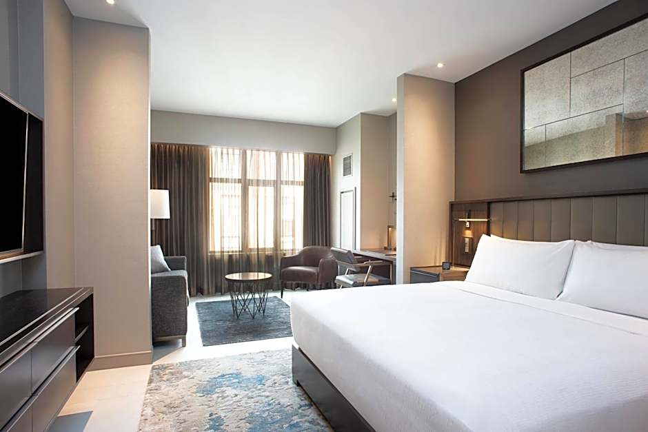 Featuring a sofa bed and a chair with ottoman, this king room offers air conditioning and a mini refrigerator.